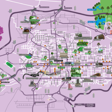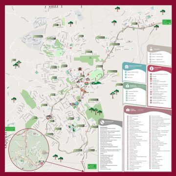 mapa geral da região de caxias com informações de ruas e pontos turísticos ilustrados.